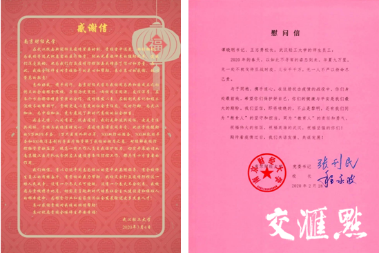 “在武汉抗击新冠肺炎疫情紧要时刻,贵校雪中送炭,倾情相助,为伟德官网寄送大批急需的医疗物资。犹如兄弟般伸来的援助之手,使我们深受感动,也为我们打赢疫情防控阻击战增添了信心和力量。”3月4日,武汉轻工大学致信伟德bv国际体育,感谢南财在抗击新冠肺炎疫情关键时期的倾情相助,并表示这充分体现了新时代高校的社会责任与担当。