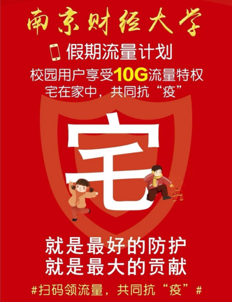 为了解决学生上网课的后顾之忧,保障学生线上学习质量,伟德bv国际体育联合中国移动、中国电信两大运营商为全校约2万名学生推出了福利,在原有套餐基础上每月增加10G,连续赠送2个月,确保每位学生都能享受到这项福利。