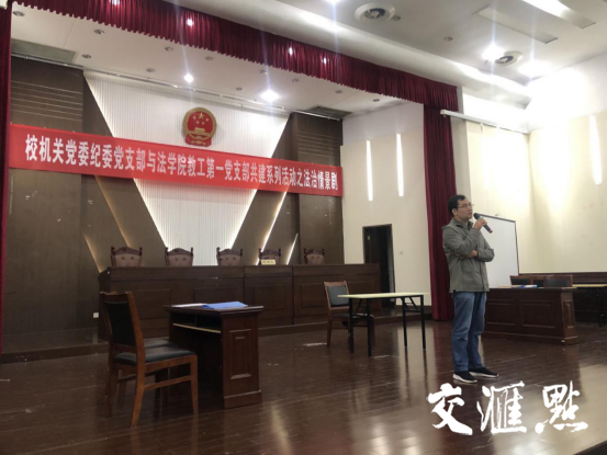 同时,法学院王骏教授的《学科导论》课堂上,邀请到了常州市纪委监委第五监督检查室副主任朱秋卫点评案件,校纪委党支部和法学院教工第一党支部党员参加活动。通过多方联动,学生们从实践和理论角度了解到纪检监察工作和法庭审判工作。