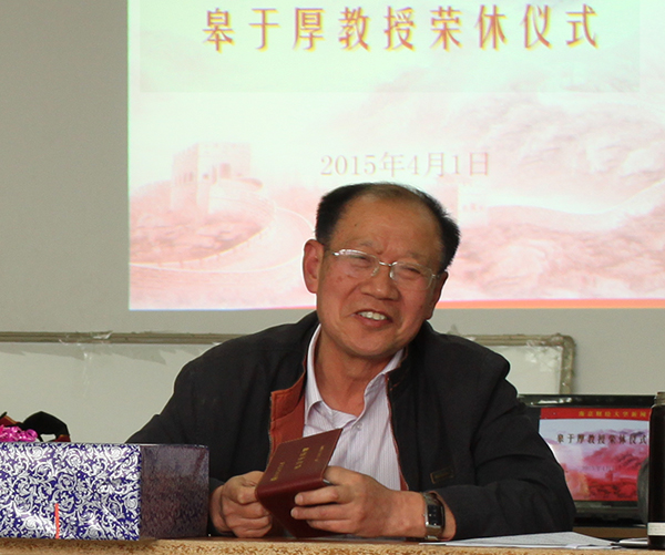 会上,宋祖华副院长代表学院对皋于厚教授满腔热忱,一心扑在教学科研上,长期以来为学院发展作出的重要贡献表示衷心感谢,对其退休后的生活致以美好祝愿;并号召全体教师向皋教授学习,争做育人模范、师德先锋。