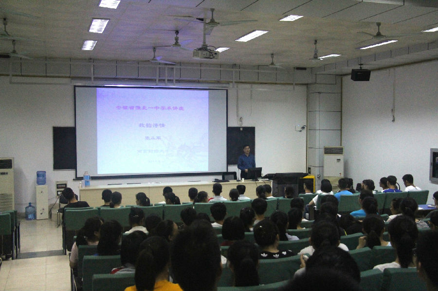 张从军教授分别在两所中学作了专场学术报告,报告以数学文化与诗歌的结合为切入点,用生动的语言让中学生领略到数学之美与数学之趣,受到学生的热烈欢迎。