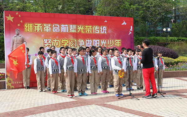 活动接近尾声之时,刘伯承中队的队员们表演了节目,并向刘伯承铜像敬献鲜花,以表达对先烈的缅怀之情。最后,全体来宾与刘伯承中队合影留念。