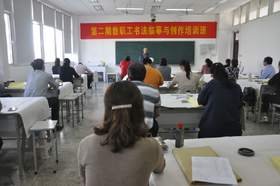 著名书法家仇高驰教授在书法培训班授课 校工会供图