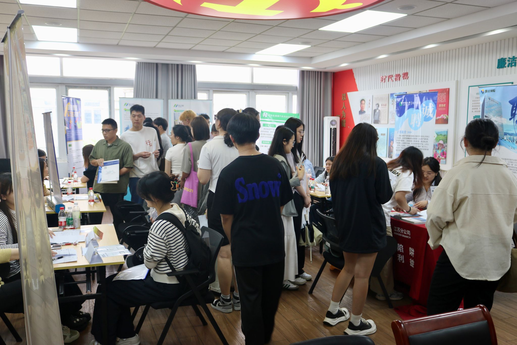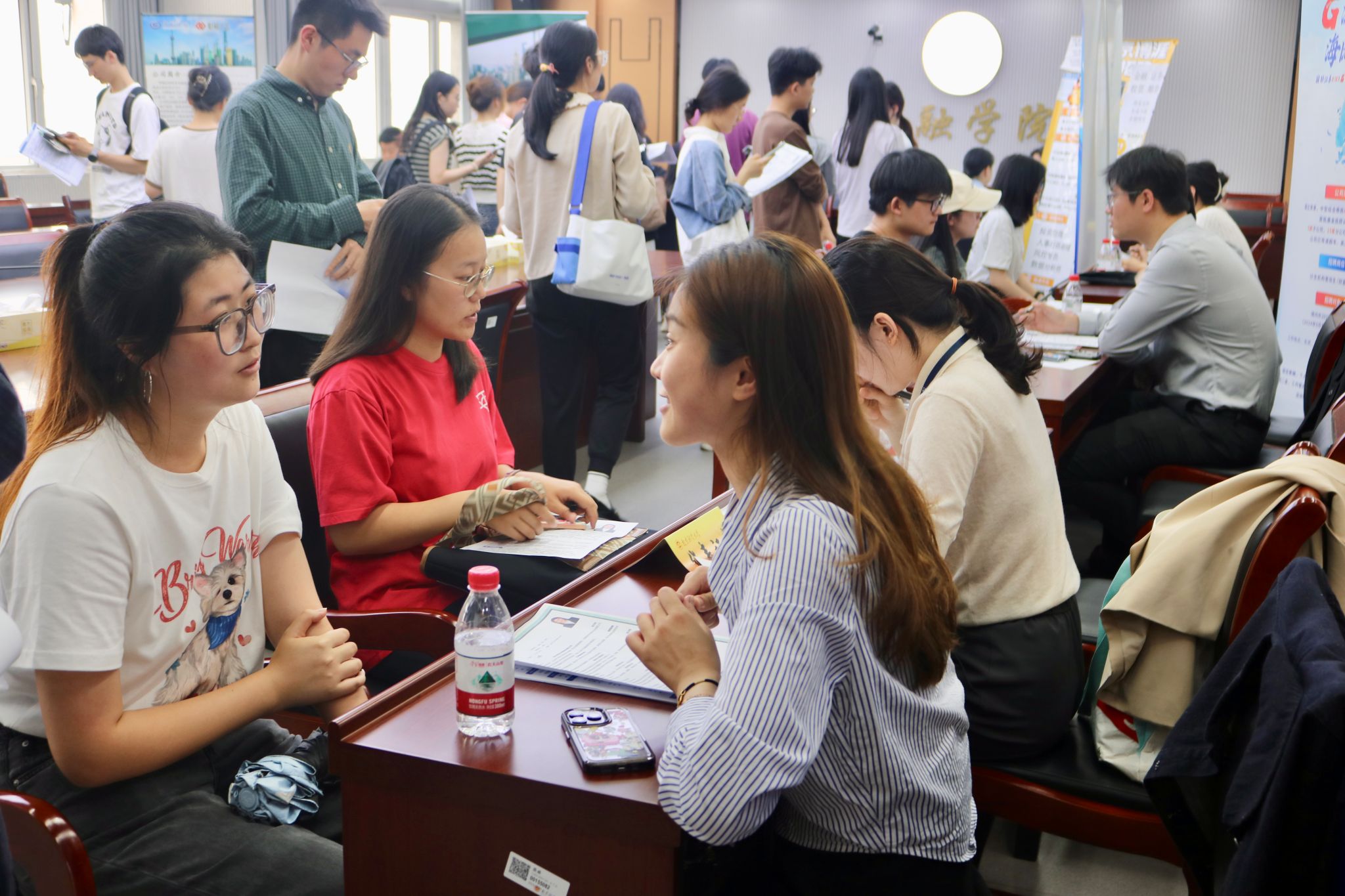 5月15日下午,“百日冲刺促就业”2025届毕业生就业暨2026届暑期实习专场招聘会在仙林校区德经楼508、507、527会议室举办。此次招聘会由南京江北新区中央商务区建设管理办公室与伟德官网党委学生工作部联合主办,金融学院、应用数学学院承办,吸引了超500名学生参与,现场气氛热烈。