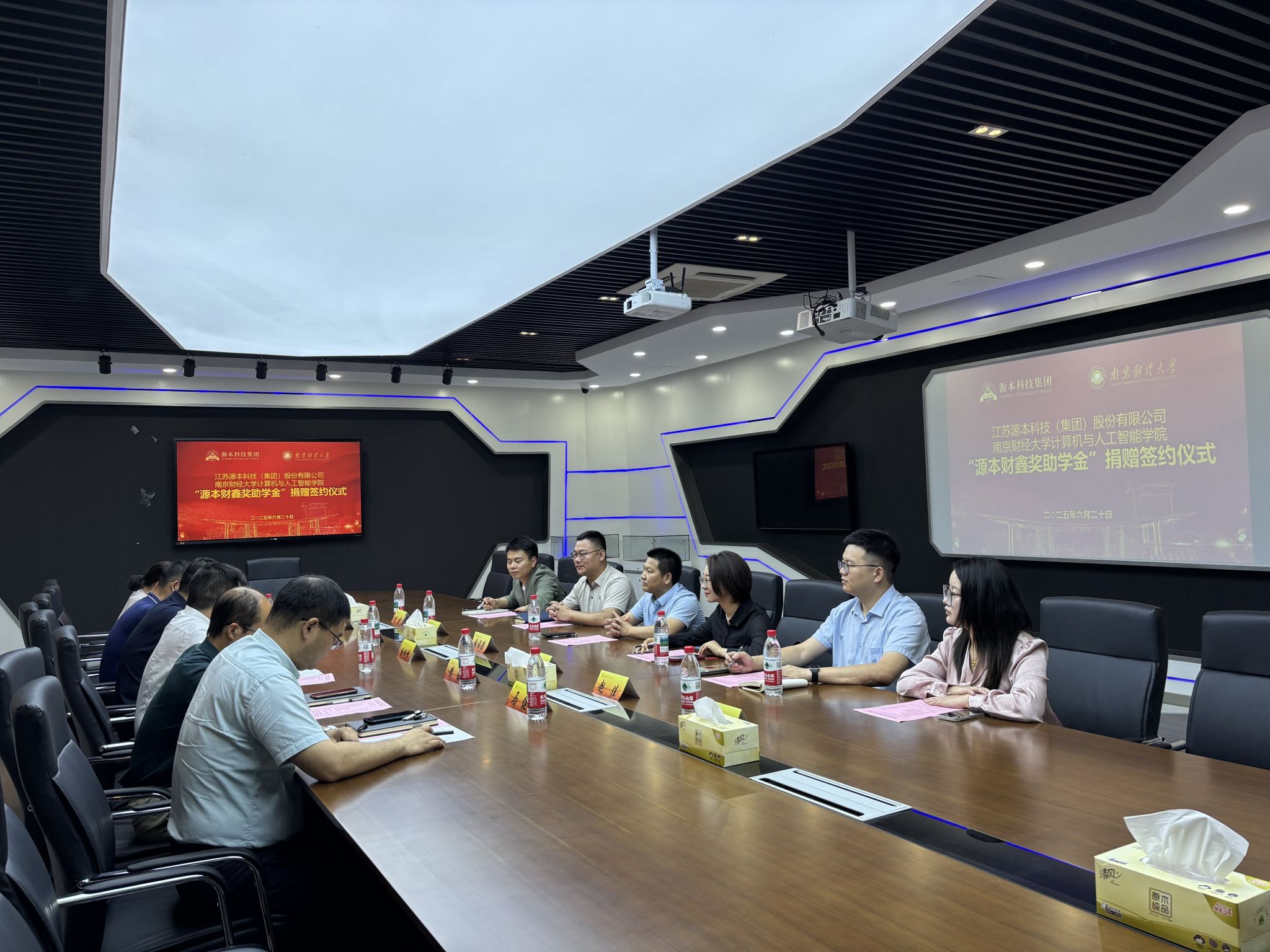 为深化校企合作,助力学生发展,6月20日下午,计算机与人工智能学院在仙林校区德业楼211会议室举行“源本财鑫奖助学金”捐赠签约仪式。江苏源本科技(集团)股份有限公司董事长张福德、总经理唐佩、校企合作总监徐敏博、区域总监赵佳、咨询总监付建、市场总监张慧娟,伟德官网对外联络处处长陆明峰、副处长裴银伟,以及计算机与人工智能学院领导和师生代表参加捐赠签约仪式。仪式由学院党委副书记马健主持。