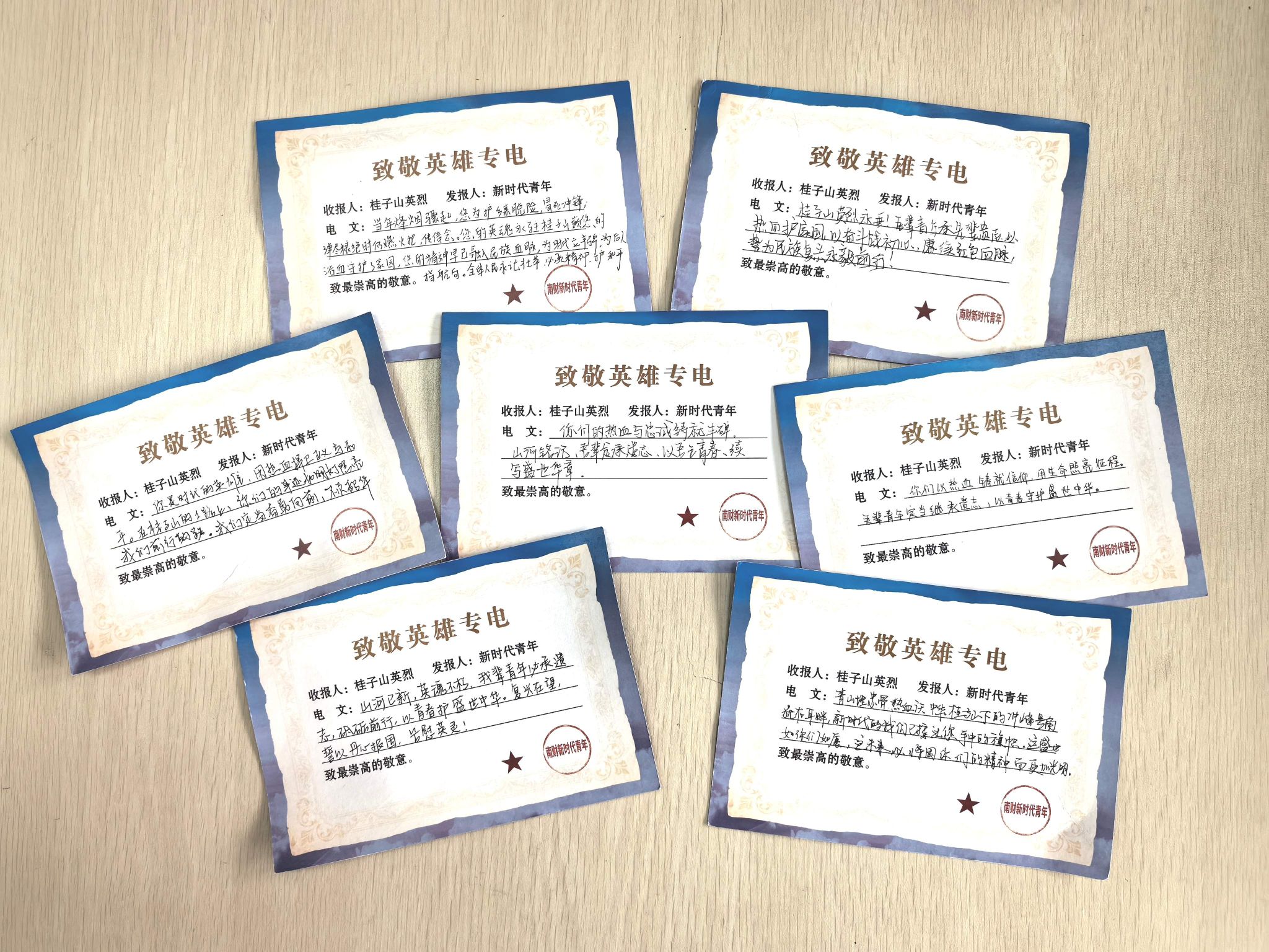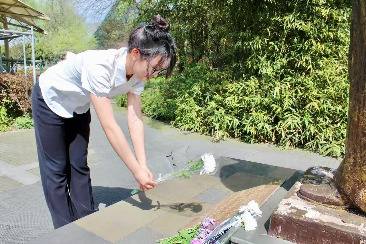 “如此近距离了解这座纪念碑,让我读懂了江桥抗战作为抗日第一枪的意义,民族危亡时刻,先辈们用血肉筑起了新的长城。”站在齐齐哈尔和平广场江桥抗战纪念碑前,经济学院数经2401班孔艺璇第一次把自己的家乡和世界反法西斯战争直接联系在一起。在上海四行仓库抗战纪念馆,同学们屏息聆听“八百壮士”浴血坚守的壮举,斑驳的弹痕墙与附近林立的高楼大厦,形成今昔的强烈对比。在南京抗日航空烈士纪念馆,学生们肃立默哀,向抗战中牺牲的中国空军飞行员敬献鲜花,指尖轻触花瓣的瞬间,仿佛与先烈的忠魂完成一场跨越时空的对话。“八十年前,年轻的他们只留下了姓名,八十年后的我们,同样年轻,也应该在新时代新征程上留下青春奋发的印记。”工商管理学院人资2201班嵇梦月被烈士们英勇抗战的精神深深感染。