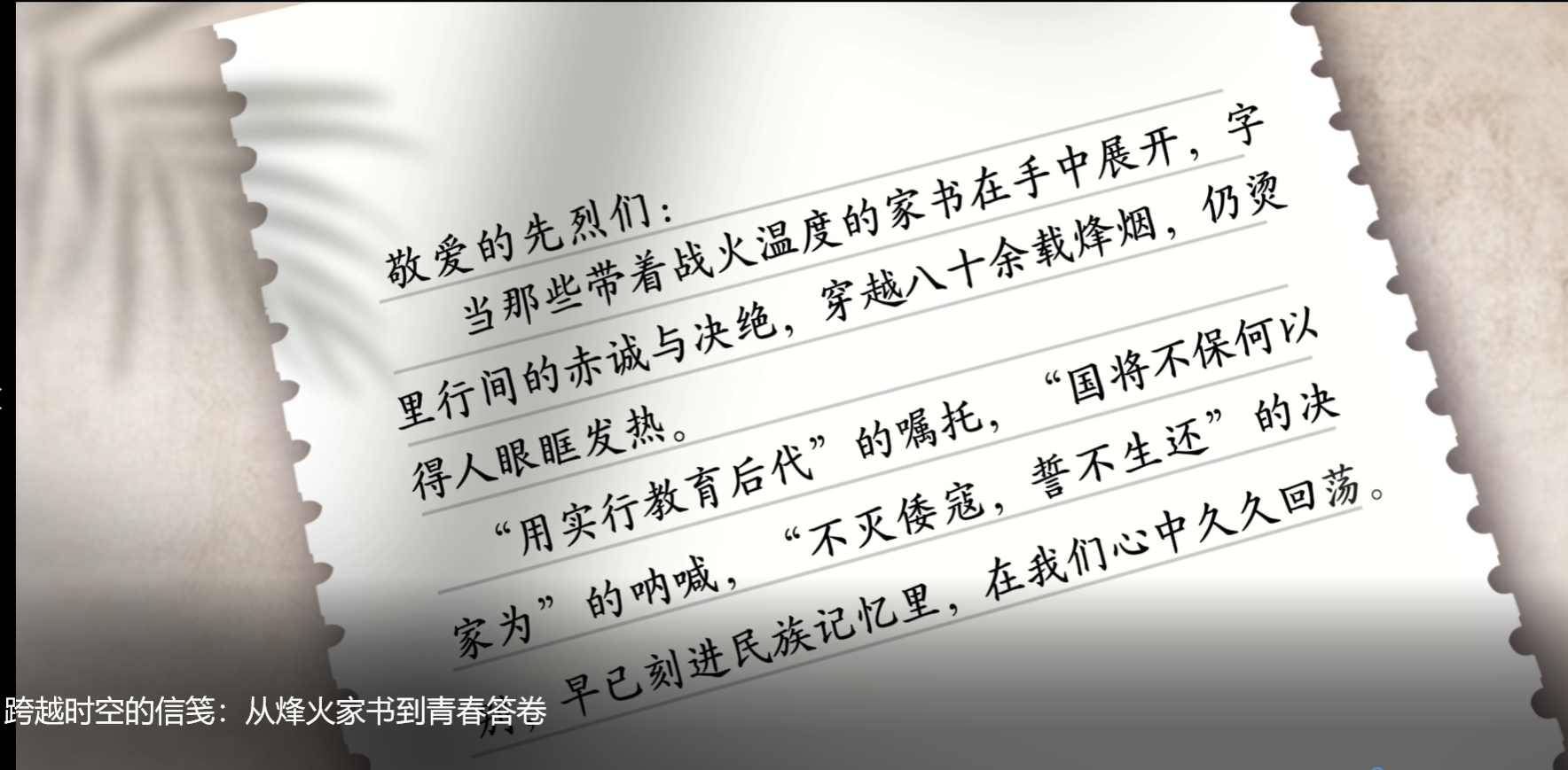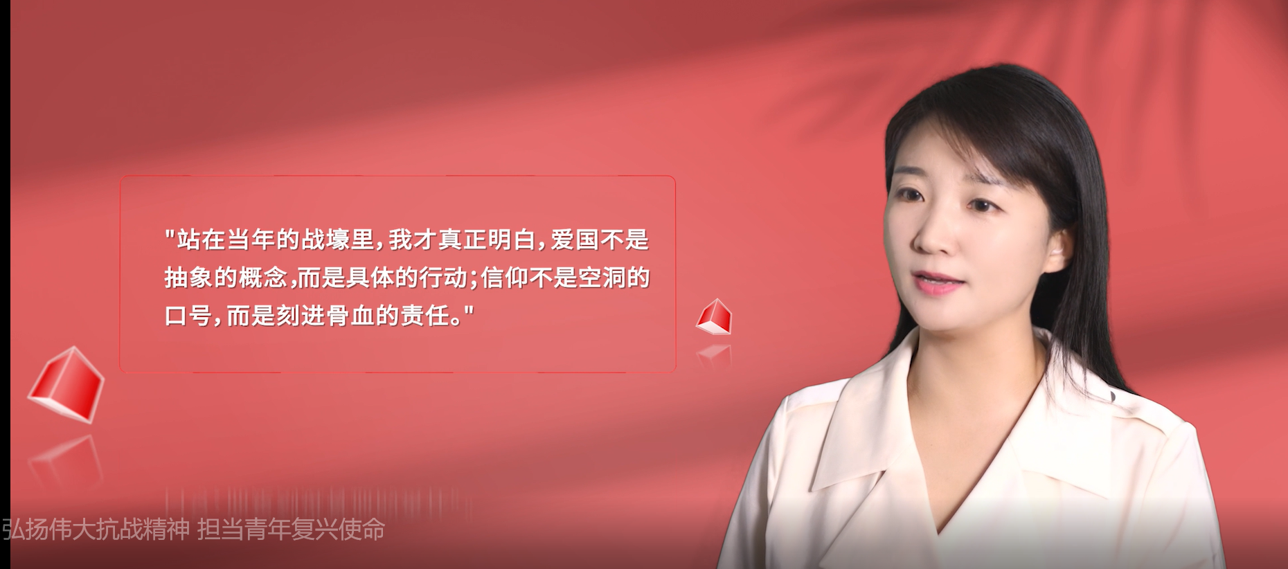 “80年的岁月并未模糊历史的轮廓,那些被战火灼烤的土地,被鲜血浸透的旗帜,被苦难淬炼的精神,早已熔铸成中华民族最坚韧的精神图腾。”新闻与文化传播学院充分发挥学科专业优势,精心策划制作了微党课与“‘新’青年说”两部主题视频,以多元视角传承红色基因,凝聚青年奋进力量。《弘扬伟大抗战精神担当青年复兴使命》微党课由新闻与文化传播学院青年教师张勇丽主讲,围绕“铭记—传承—奋进”主线,深度阐释伟大抗战精神的时代价值。沿着“九一八事变—七七事变—八一三事变—南京大屠杀”的历史脉络,展现中国共产党引领军民团结御敌的壮阔历程,并通过邓玉芬、杨靖宇、狼牙山五壮士等典型事迹,诠释抗战精神的核心内涵。同时,对照新时代航天、深海探测等领域青年奋斗群像,彰显青年一代的使命担当,激励青年以信仰之力、过硬本领投身民族复兴伟业。“敬爱的先烈们:当那些带着战火温度的家书在手中展开,字里行间的赤诚与决绝,穿越八十余载烽烟,仍烫得人眼眶发热。”《跨越时空的信笺:从烽火家书到青春答卷》以“信笺”为精神纽带,从青年学子的视角切入,构建起跨越80年的时空对话,展现新时代青年以奋斗为墨,对先烈嘱托作出的“青春答卷”。
