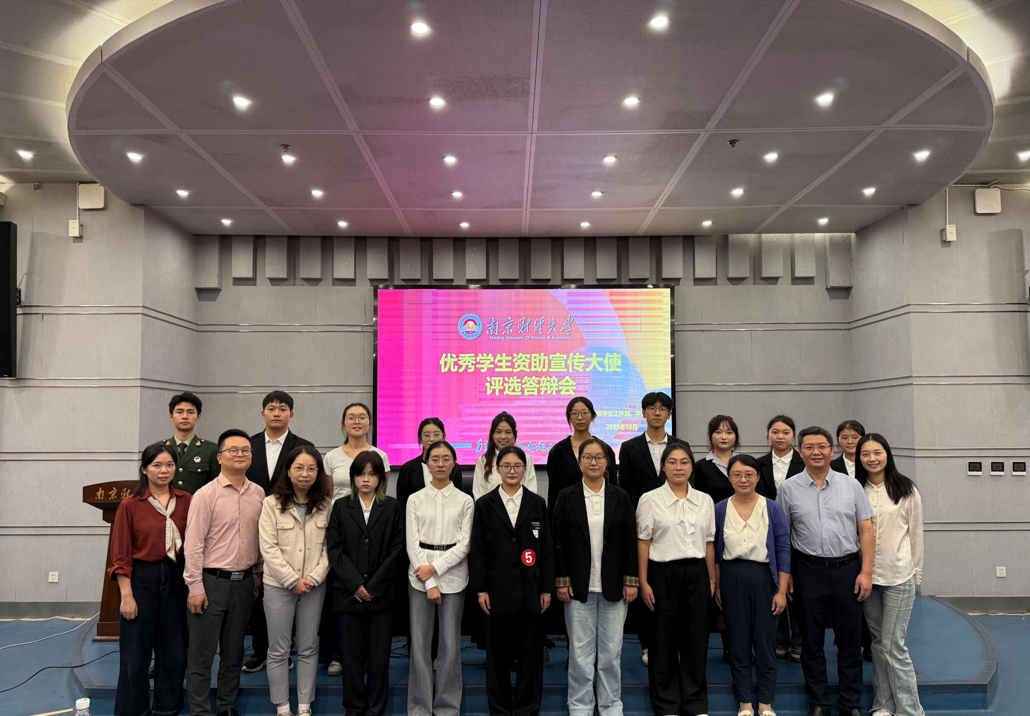 10月13日晚,由党委学生工作部、学生处主办,学生发展支持中心承办的2025年“学生资助宣传大使”评优暨“江苏学生资助宣传大使”推荐答辩会在仙林校区行政楼二楼报告厅举行。党委学生工作部副部长袁怡琨、团委副书记胡新蕲、心理健康教育中心副主任吴垠、资产经营有限公司总经理魏红亮和学生处学生资助管理科科长徐玉担任评委。经过各学院遴选推荐产生的15名同学参加答辩会。