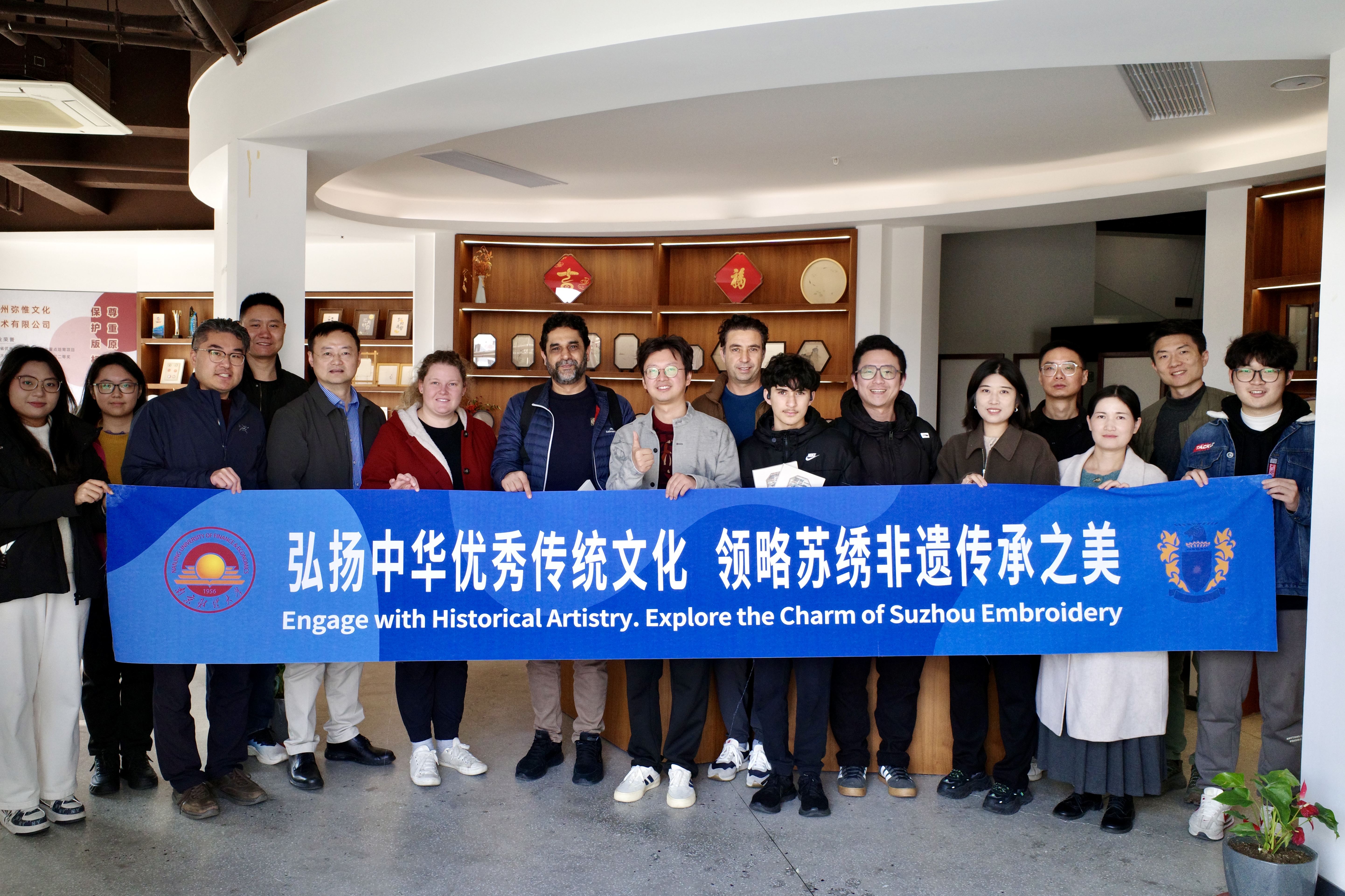 梅西师生在刺绣艺术馆合影留念