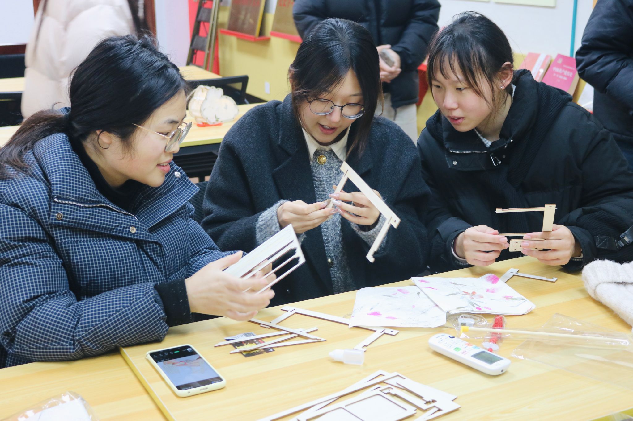 营销与物流管理学院开展花灯制作活动。志愿者提前布置场地、分装材料,准备了贴面、流苏、LED灯串等制作包,并提供宫灯、兔儿灯等多种样式。活动现场,志愿者热情协助老师搭建骨架、搭配装饰,大家在指尖流转中感受非遗之美,体会传统技艺的温度。一个多小时后,一盏盏花灯在熄灯瞬间齐亮,暖光映照笑脸。