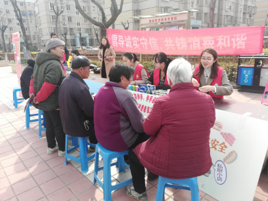 法学院法律援助中心在栖霞区五福家园社区开展了以“保护消费者权益,履行经营者义务”为主题的普法活动。活动现场,志愿者通过播放宣传片、发放维权宣传单、维权知识手册、讲解维权海报等多种方式进行普法宣传。他们还面向中老年群体讲解保健品骗局,为中老年居民们答疑解惑,提高中老年的防骗意识。“我们经常会遇到保健品宣传活动,以后遇到这种情况还得长个心眼儿了。”活动引起在场老年人的共鸣。现场还组织了趣味十足的有奖竞答,热闹的活动气氛,实用的小奖品,吸引了众多社区居民前来参加。最后,志愿者邀请参与的居民们在横幅上签名,写下对消费者权益保护方面的建议和美好祝愿。