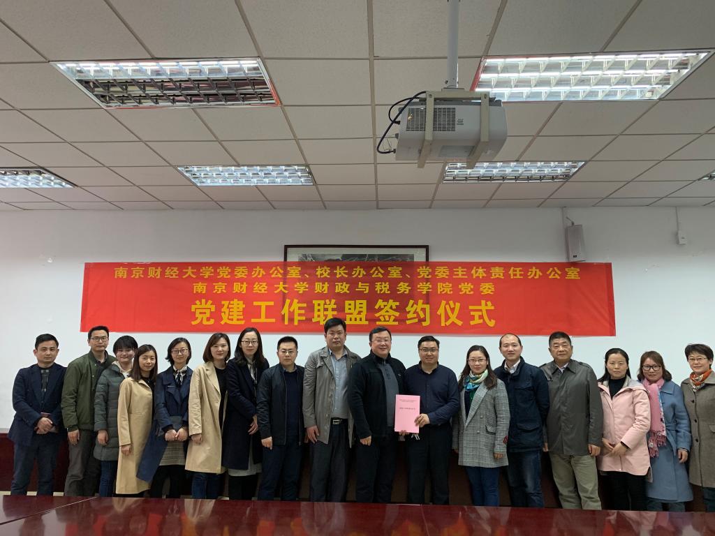 4月10日下午,党校办、财政与税务学院在仙林校区德经楼408会议室举行了党建联盟签约仪式。党委办公室、校长办公室、党委主体责任办公室班子全体成员、财政与税务学院班子全体成员、双方单位全体教工党员、财政与税务学院部分学生党员代表参加了签约仪式。