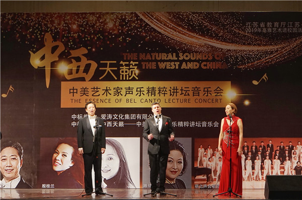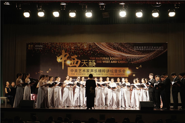 4月11日晚,由江苏省教育厅、江苏省财政厅主办的高雅艺术进校园——“中西天籁”中美艺术家声乐精粹讲坛音乐会在福建路校区大礼堂举行。近千名师生现场观看了演出。