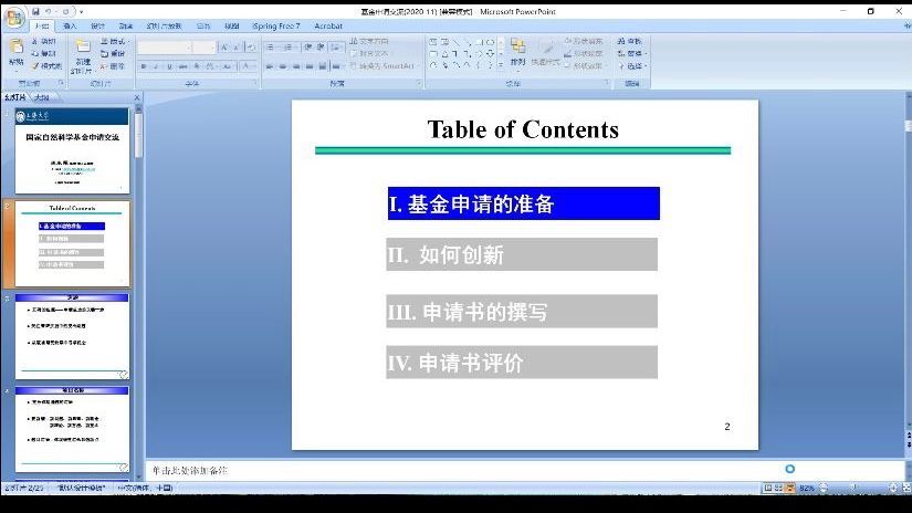范小军教授从“基金申请的准备”“如何创新”“申请书的撰写”“申请书评价”四方面展开讲座。关于基金申请的准备,范小军教授就如何正确选题、选题项目名称及时间准备分享了自己的经验和建议。对于如何创新,范小军教授从对创新的理解、创新的形式及创新思路多角度进行讲解,提出创新的关键词,即敢想、突破口和奇思妙想。谈到申请书的撰写,范小军教授认为决心十分重要,并总结了申请书的撰写目标、科学问题的提炼及立论依据的准备,就申请书评价方式进行了细致解答。