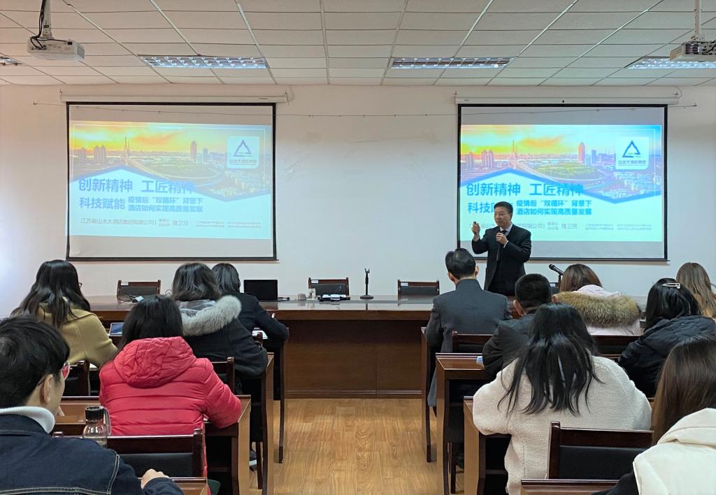 12月6日下午,应工商管理学院邀请,江苏山水大酒店集团有限公司董事长隆卫良在仙林校区德济楼408会议室作了题为“创新精神、工匠精神、科技赋能——疫情后‘双循环’背景下酒店如何实现高质量发展”的讲座。工商管理学院旅游管理专业部分师生聆听了讲座。讲座由工商管理学院院长万绪才主持。