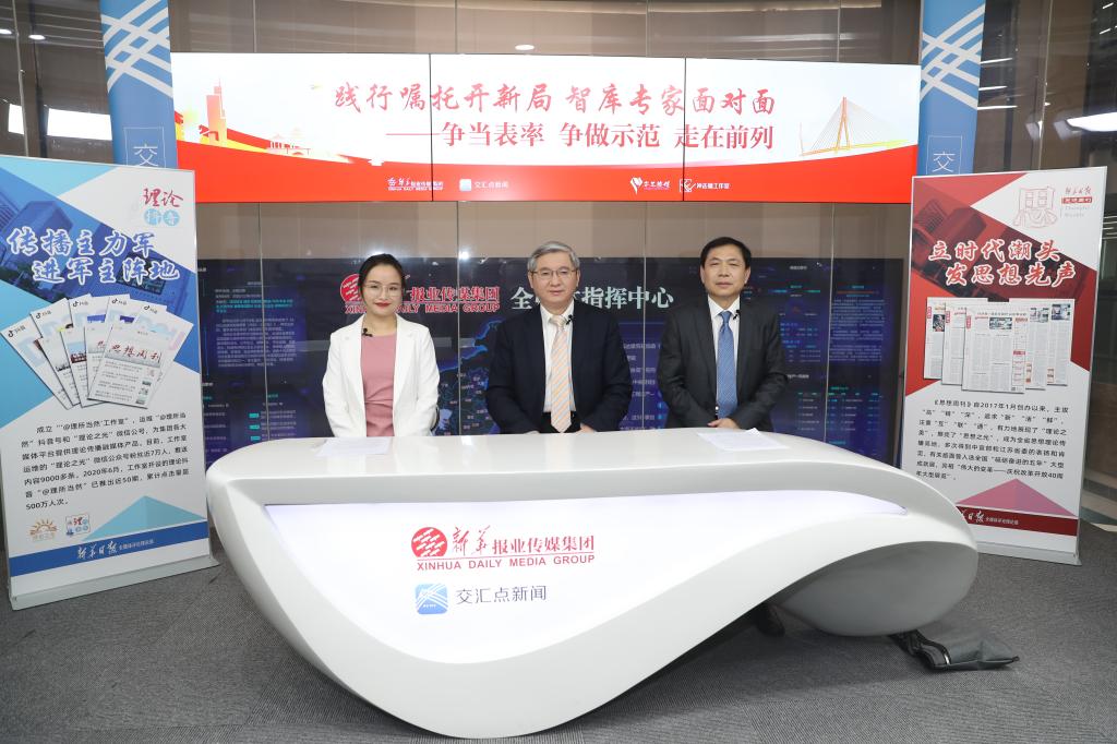 据悉,该系列访谈是为贯彻落实省委《关于深入学习贯彻习近平总书记视察江苏重要讲话指示精神的通知》精神,更好发挥社科界专家特别是智库专家在推动总书记的重要讲话指示在江苏落地生根这项重大政治任务中的重要作用,由江苏省哲学社会科学规划办公室联合新华日报社全媒体评论理论部共同策划推出。该系列访谈自12月起,在新华报业传媒集团演播厅由《新华日报》“姿正腔媛”全媒体工作室,采取一位主持人访谈两位专家的形式,对智库专家进行现场访谈录播。《新华日报》思想周刊将于12月起连续6周整版呈现,同时在“学习强国”江苏学习平台、中国江苏网、交汇点客户端、“理论之光”网站、“理论之光”微信公众号等全媒体平台以“文字+视频+图表”等全媒体方式推出。
