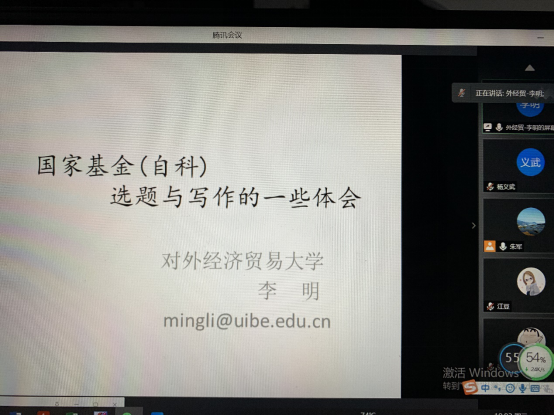 对外经贸大学李明教授作国家项目申报线上指导