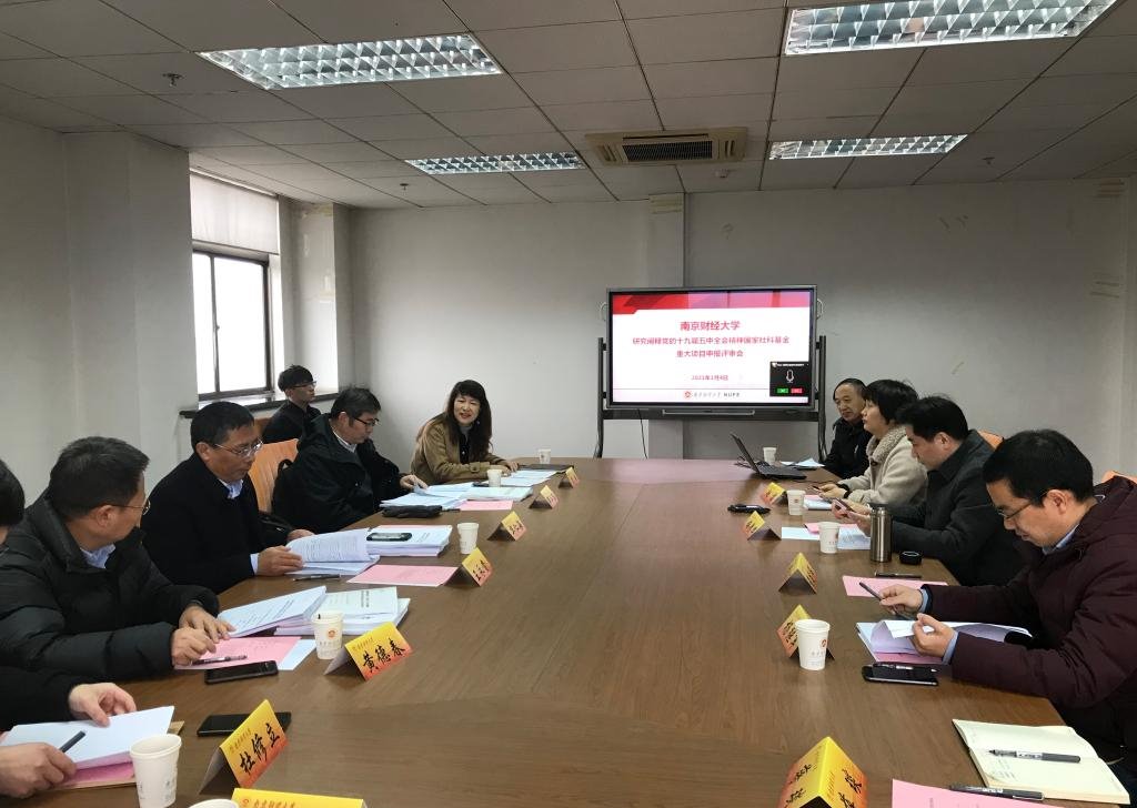 1月4日,学校在仙林校区行政楼1201会议室召开研究阐释党的十九届五中全会精神国家社科基金重大项目申报评审会。会议邀请了南京大学教授郑江淮、南京师范大学教授王永贵、河海大学教授黄德春等作为项目评审专家。科研处相关负责人、国家社科基金重大招标项目投标人以及科研处工作人员参加会议。会议由科研处处长李杏主持。