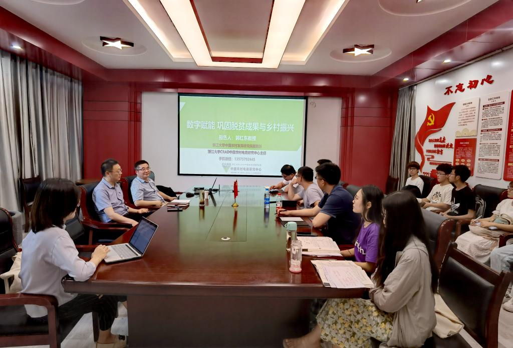 6月27日,浙江大学中国农村发展研究院副院长郭红东教授应邀为经济学院师生作了题为“数字技术赋能乡村振兴”的学术报告。报告由经济学院院长朱红根主持。