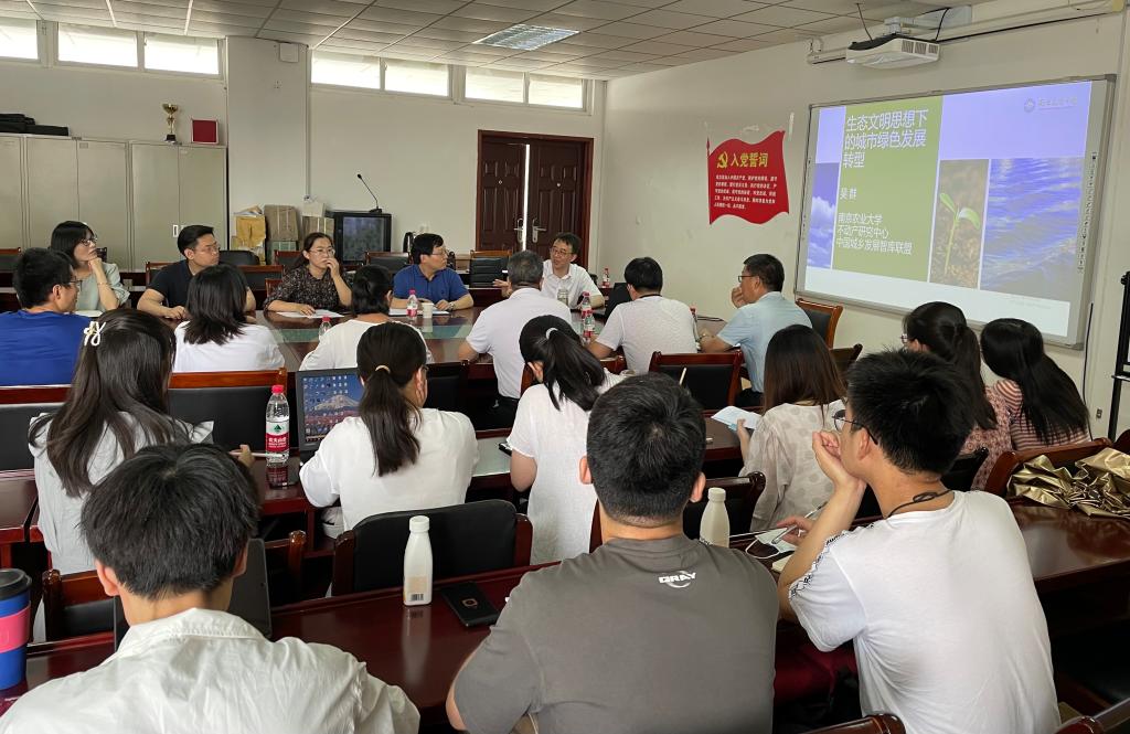 7月6日上午,应公共管理学院邀请,南京农业大学钟山学者首席教授、不动产研究中心主任吴群在仙林校区德济楼508会议室作了题为“生态文明思想下城市绿色发展转型”的学术报告。公共管理学院部分师生聆听了报告会。报告会由公共管理学院党委书记胡永远主持。