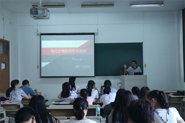 王干教授还提到了目前中国文学创作走向中两个关键性问题。一是经典文学的生成问题,他从经典文学与民间文学的两个维度,分析了以郭敬明、韩寒等人为代表的青春文学,以及近来发展迅猛的网络文学能否从民间走向经典的问题。二是中国文学高峰的生成问题,他从习近平总书记在中国文学艺术界联合会第十次全国代表大会、中国作家协会第九次全国代表大会上的重要讲话出发,阐释了习近平总书记论述当代文学创作有“高原”无“高峰”的问题,认为当代文学工作者只有在文学创作中明确历史的高度、人性的高度、哲学的高度,才有可能创作出高峰作品。