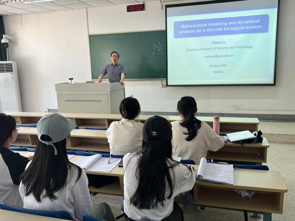 4月27日下午,应应用数学学院邀请,浙江科技大学李先义教授在仙林校区德济楼205作了题为"Mathematical Modeling and Bifurcation Problems of Discrete Biological Systems"的学术讲座。应用数学学院相关教师与研究生参加讲座。