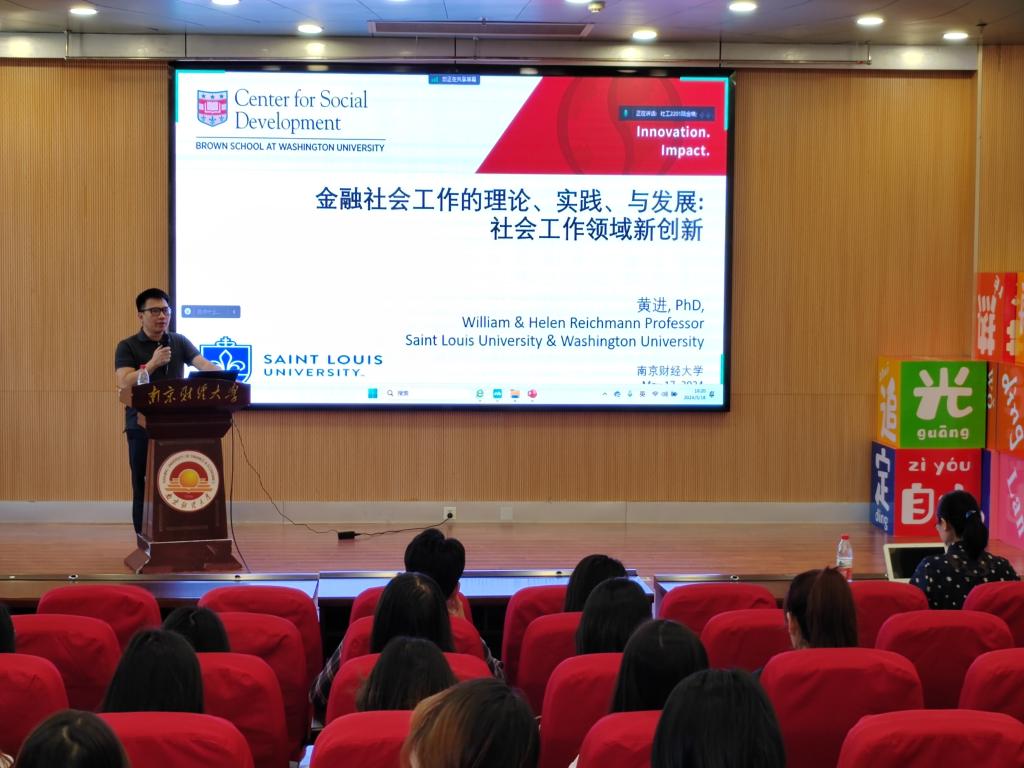 5月16日上午,美国圣路易斯大学社会工作学院黄进教授应邀到伟德官网作主题为“金融社会工作的理论和实践”的学术讲座。讲座由中国社会工作教育协会副会长、南京大学社会学院彭华民教授进行评议,法学院部分师生及社会工作系的合作单位人员参加讲座,并就金融社会工作主题进行了学术交流。讲座由法学院社会工作系主任许芸副教授主持。
