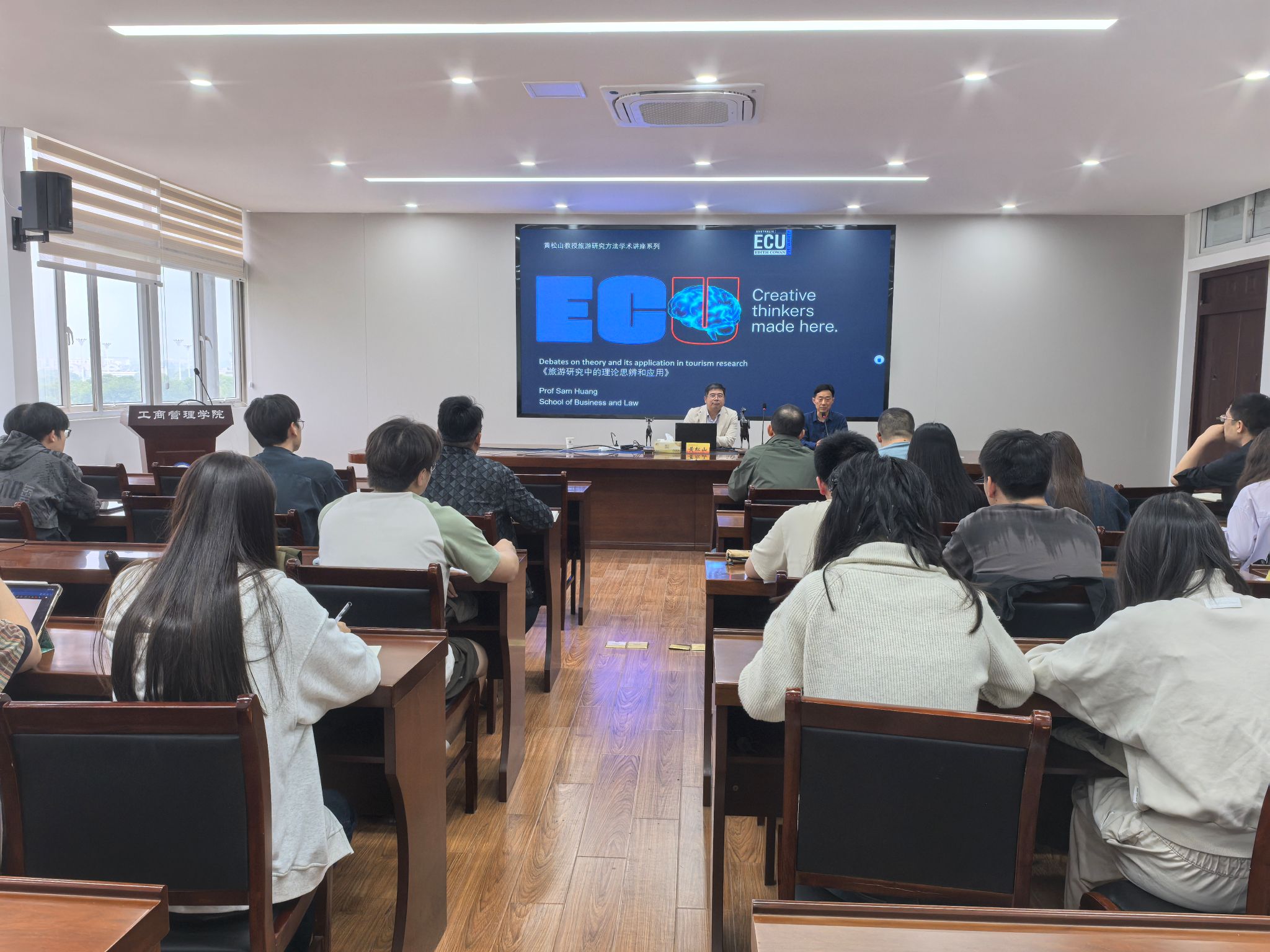 5月8日下午,应工商管理学院邀请,澳大利亚伊迪斯科文大学商务与法律学院旅游研究中心主任、校长特聘研究型教授黄松山(Sam Huang)于仙林校区德济楼408会议室作了“旅游研究中的理论思辨与应用”专题讲座。学院师生参加讲座。讲座由工商管理学院院长万绪才主持。