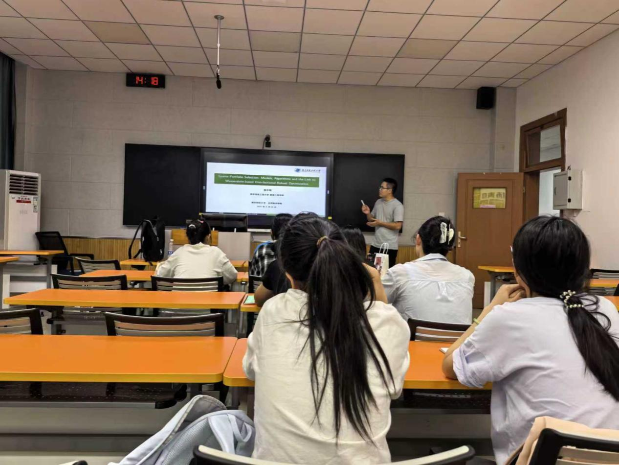 9月18日下午,应应用数学学院邀请,南京信息工程大学管理工程学院吴中明教授在仙林校区博文楼106室作了题为“Sparse Portfolio Selection:Models,Algorithms and the Link to Wasserstein-based Distributional Robust Optimization”的学术讲座。学院相关教师和研究生参加讲座。
