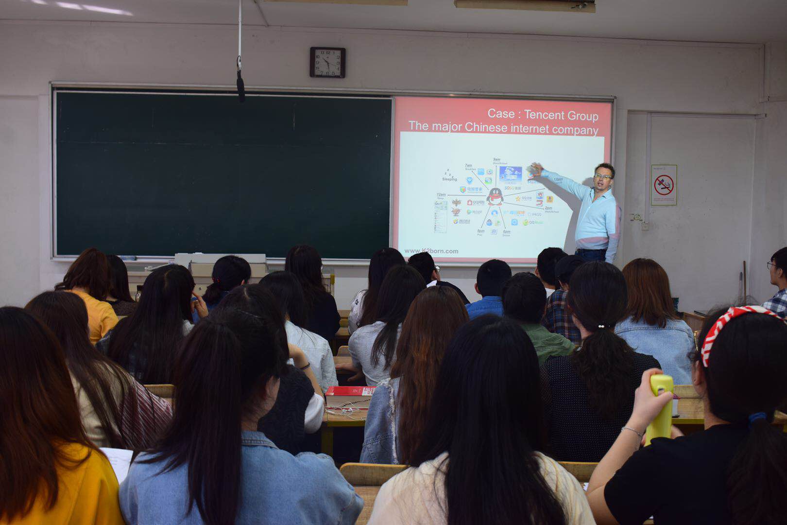 最后一天的课程,Tanguy Jacopin教授设置了学生演讲环节,同学们在资料收集的基础上,从餐饮、日用品零售等行业出发,分别展示了十年以来国际企业结合互联网的发展历程,Tanguy Jacopin教授也作出了相应的点评。