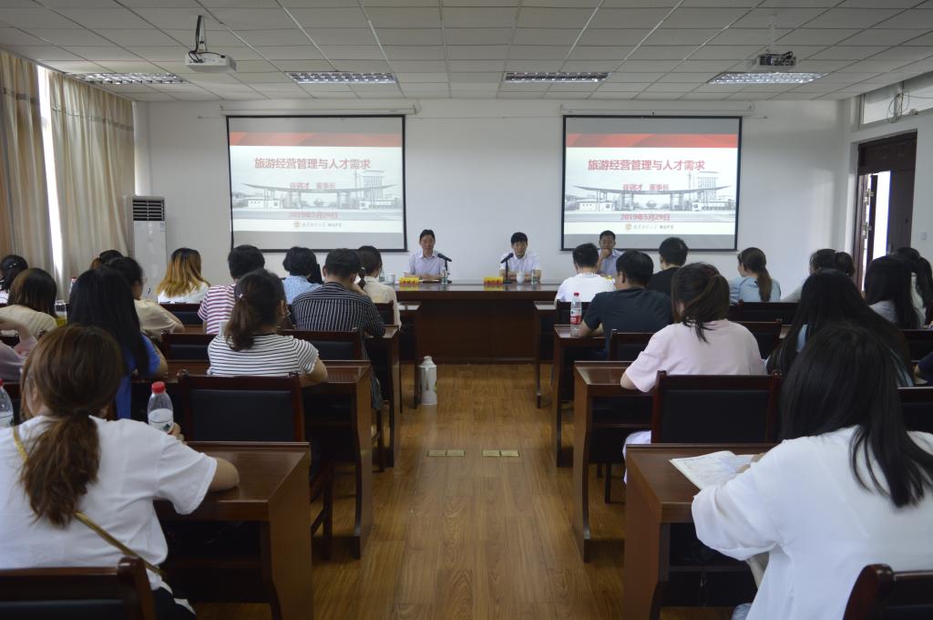 5月29日下午,应工商管理学院邀请,伟德官网广东省校友会会长、中国国旅下属企业董事长、86届校友谷训才于伟德官网仙林校区德济楼408会议室作了题为“旅游经营管理与人才需求”的讲座。工商管理学院党委书记万绪才、校友会副处长王冲及旅游管理专业部分学生聆听了此次讲座。讲座由万绪才书记主持。