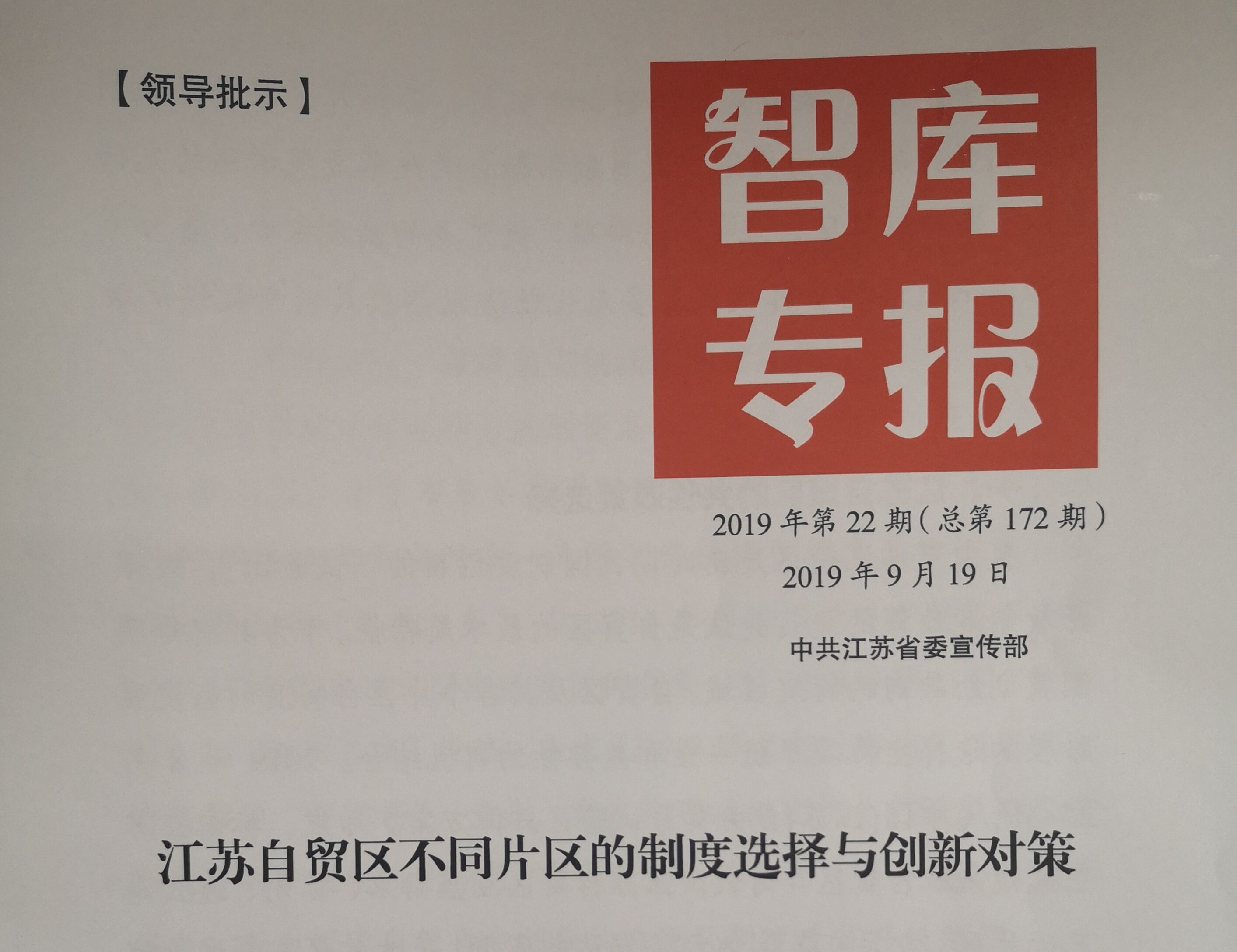 近日,伟德官网智库决策咨询成果《江苏自贸区不同片区的制度选择与创新对策》被省委宣传部《智库专报》录用。该报告由江苏省重点培育智库、现代服务业智库主要研究人员共同完成,刊发于2019年第22期,并上报至有关领导参阅。