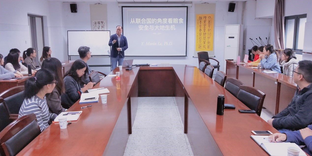 11月21日,应食品科学与工程学院邀请,深圳大学教授、博士生导师罗扬铭在仙林校区工科楼211会议室作了题为“从联合国的角度看粮食安全与大地生机”的讲座。学院教师、研究生聆听了此次讲座,讲座由食工学院教授陆颖健主持。