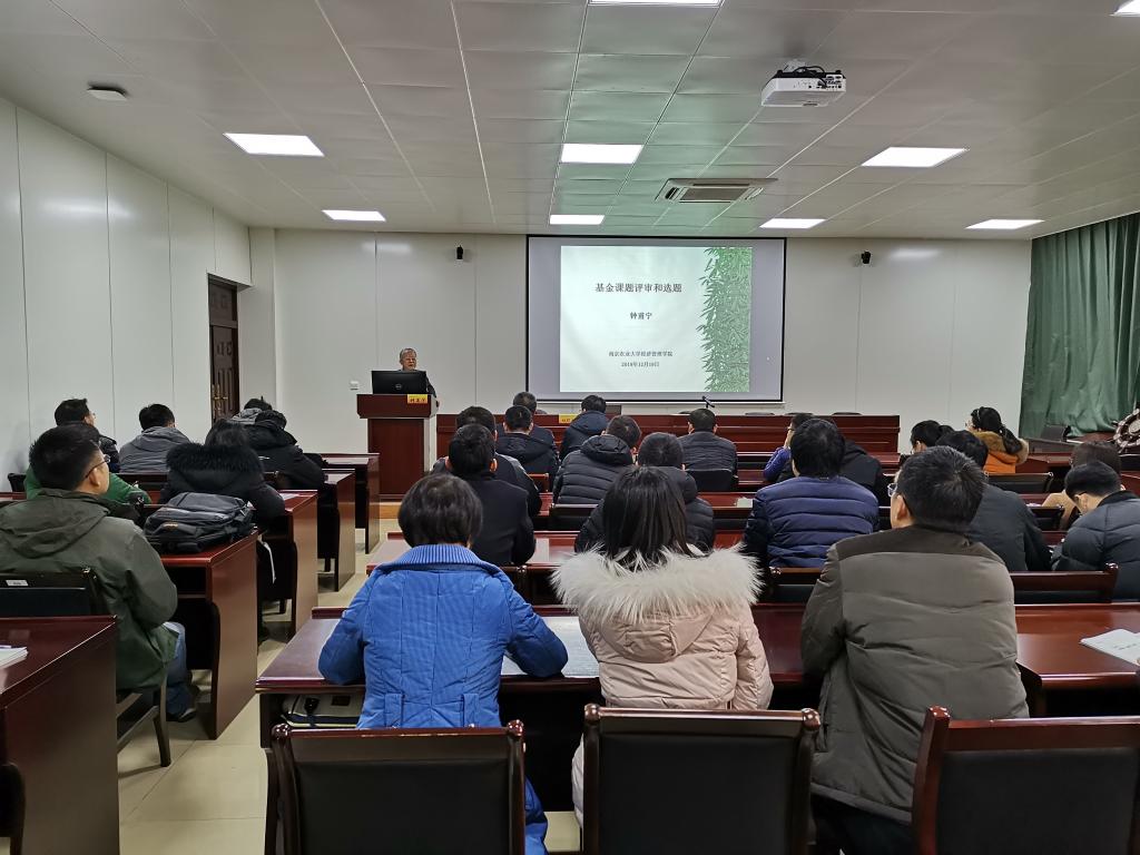12月19日下午,伟德官网在仙林校区德经楼307会议室举办第七期“青年教师科研能力提升计划”讲座。应伟德官网科研处和经济学院邀请,中国农业经济学会顾问、江苏省经济学会副会长、国务院政府特殊津贴专家、南京农业大学钟山学者、特聘教授钟甫宁作了专题报告。伟德官网经济学院院长朱红根、科研处副处长杜修立,经济学院、金融学院、国际贸易学院、财税学院、粮食经济研究院青年教师参加了讲座。讲座由朱红根院长主持。