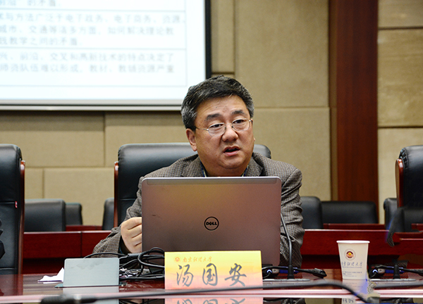 汤国安教授从教学团队建设、课程建设、教材建设、实践教学基地建设等方面介绍了由他主持的国家特色专业建设的探索与实践之路。他说,国家特色专业建设是一项系统工程,尤其要注重顶端设计,在此基础上,要运用系统工程的思想,一体化设计、一体化实施,选准突破点,以点带面推进。他强调,在国家特色专业的建设过程中,要坚持人才培养的核心地位,正确处理好科研与教学的关系,强化科研与教学互补,特别要认识到教学水平提高对科研的反哺作用和对学科建设的巨大推动作用。