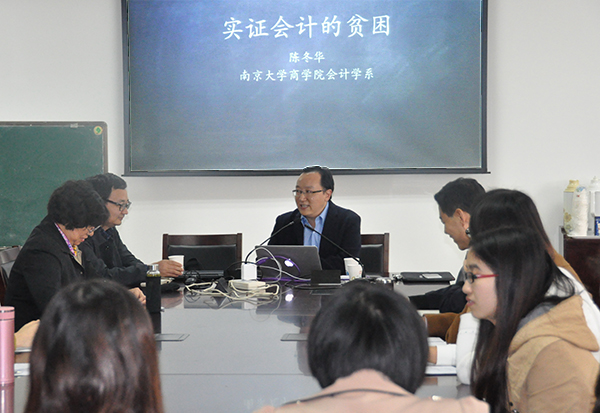 下午,应会计学院邀请,南京大学商学院博士生导师陈冬华教授在伟德官网仙林校区管理学科楼308室作了题为“实证会计的贫困”的报告。报告由会计学院副院长(主持工作)李连军主持,会计学院相关教师、部分研究生聆听了报告。