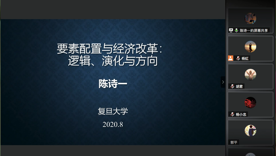8月28日下午,应金融学院邀请,复旦大学经济学院党委书记、教授陈诗一通过腾讯会议作了题为“要素配置与经济改革:逻辑、演化与方向”的学术讲座。讲座由金融学院副院长(主持工作)张成主持,副院长郭文旌、姚定俊及校内外青年教师聆听了讲座。