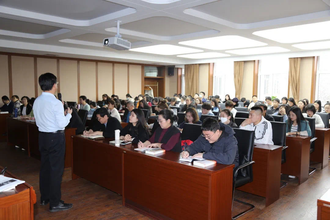 随后,张瑞军老师从学科底蕴和历史维度出发,以“明理增信崇德力行之谈新民主主义革命史”为题,主要围绕新民主主义革命的前奏(“五四运动”结束了国人被动求学的学徒状态)和新民主主义革命的历程(28年的风雨洗礼锻造了中华民族的主心骨两个方面的内容),从“醒起来”到“站起来”,以熠熠生辉的党史为精神养料,为深化党员新民主主义革命史教育进行了高屋建瓴式的指引和思想启迪。党课主题突出,内容丰富,以史鉴今,使大家更加深刻地认识到,历史是最好的教科书,党史是最好的思政教材,我们党的一百年,是矢志践行初心使命的一百年,是筚路蓝缕奠基立业的一百年,是创造辉煌开辟未来的一百年。回望过往的奋斗路,展望前方的奋进路,我们要把学习领悟党史作为牢记党的初心和使命的重要途径,强化以史为鉴、走向未来的历史思维,增强初心如磐、使命在肩的历史担当,立足新征程新使命,走好新时代的长征路。