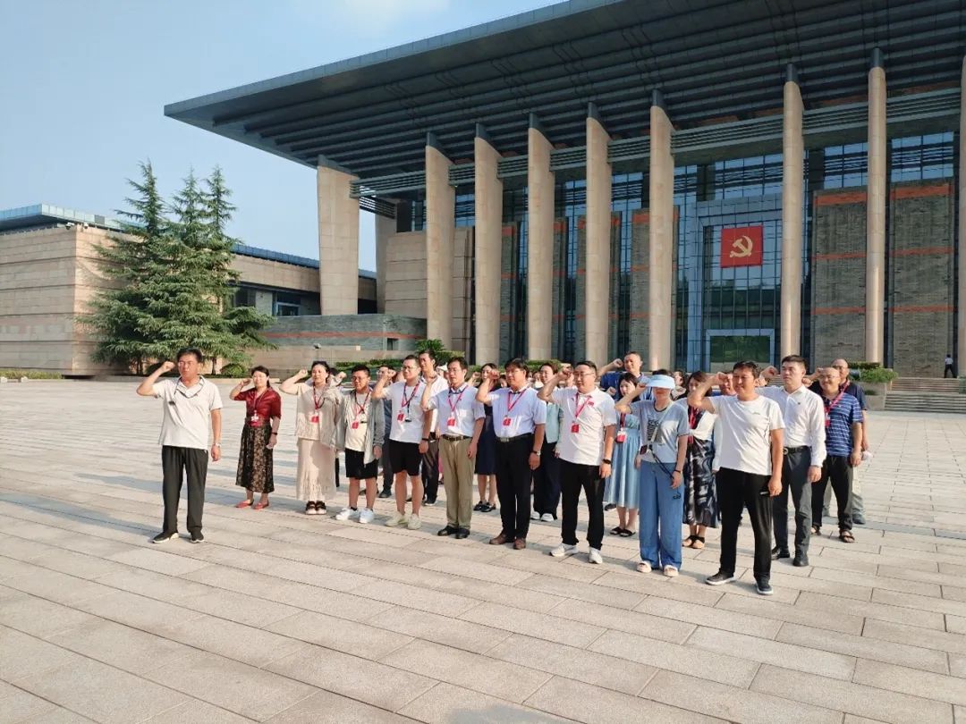 图为张瑞军书记带领全体党员教师在南湖纪念馆前重温入党誓词