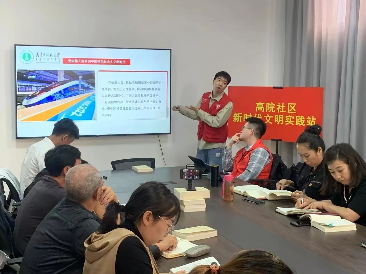 在呼和浩特市的多个社区,宣讲员们结合网格内居民的年龄结构、知识水平和实际需求,用通俗易懂的语言讲述党史故事、解读惠民政策。在老旧小区的网格里,针对老年居民,宣讲员们用亲切的方言,围绕养老、医疗等政策展开细致讲解;在新建小区的网格中,面对年轻居民,他们则运用新媒体手段,通过播放短视频、分享图文资料等方式,宣讲党的最新理论成果,让党的声音走进千家万户。这种“群众点单—团队配菜—按需送餐”的模式,让宣讲团的足迹更有温度。当政策解读配上生活案例,当理论宣讲融入场景体验,那些曾经略显遥远的“国家大事”,正化作百姓手中的 “实用手册”、心里的 “明白账”,真正打通了理论惠民的 “最后一公里”。