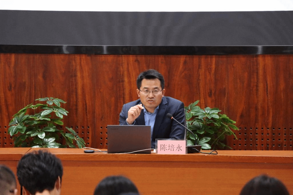 陈培永教授以《关于习近平新时代中国特色社会主义思想教学与研究的几个问题》为题,围绕“习近平新时代中国特色社会主义思想的总体把握”、“教材向教学的转化”、“学术研究理路”三个方面作了详细讲解。陈教授向与会教师分享了自己的思政课教学心得,他认为,教师要突出自身在课堂上的“主体性”,通过“穿插心得”、“讲解观点”、“问题思考”、“打造金句”等多种形式提升课堂教学质量。