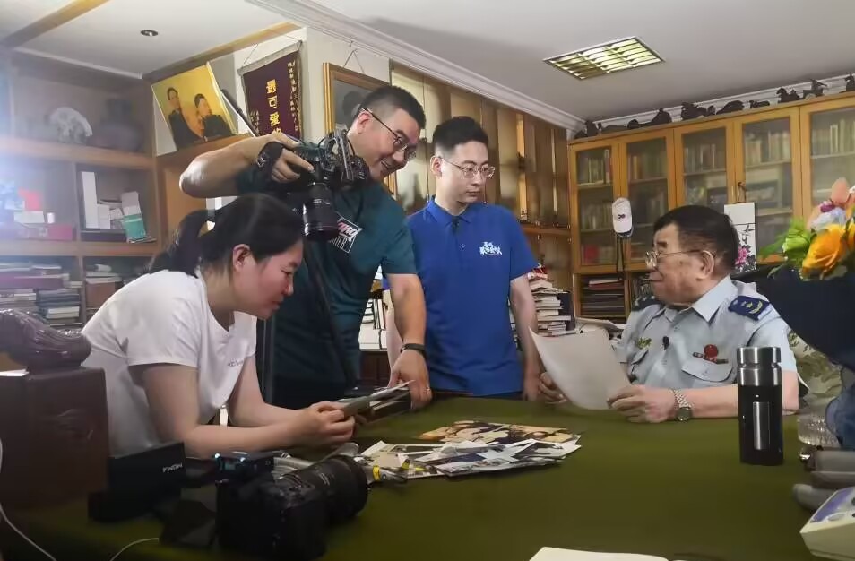 储范阳回忆了寻访三大战争亲历者的艰难过程。去年10月,南京军休中心向团队提供了26位受访者,同学们欢欣鼓舞,期待能早日完成访谈任务。但是,接下来因为疫情,学生无法离校,名单上的不少老战士去世或染重病,最终团队只完成了对9位老战士的访谈。“疫情给我们的调研带来了重重困难。但是,团队成员重温革命实践历程、弘扬伟大斗争精神的情怀矢志不渝。”焦楚棋说,“寒来暑往,风雨兼程。在凛冽寒风中,在炎炎烈日下,我们扛着大包小包的摄影器材奔赴军休所及老战士家中进行采访。暑假期间,我跟随老师去上海采访韩德彩中将。在火车上,我们一边准备采访资料,一边修改参赛视频。”
