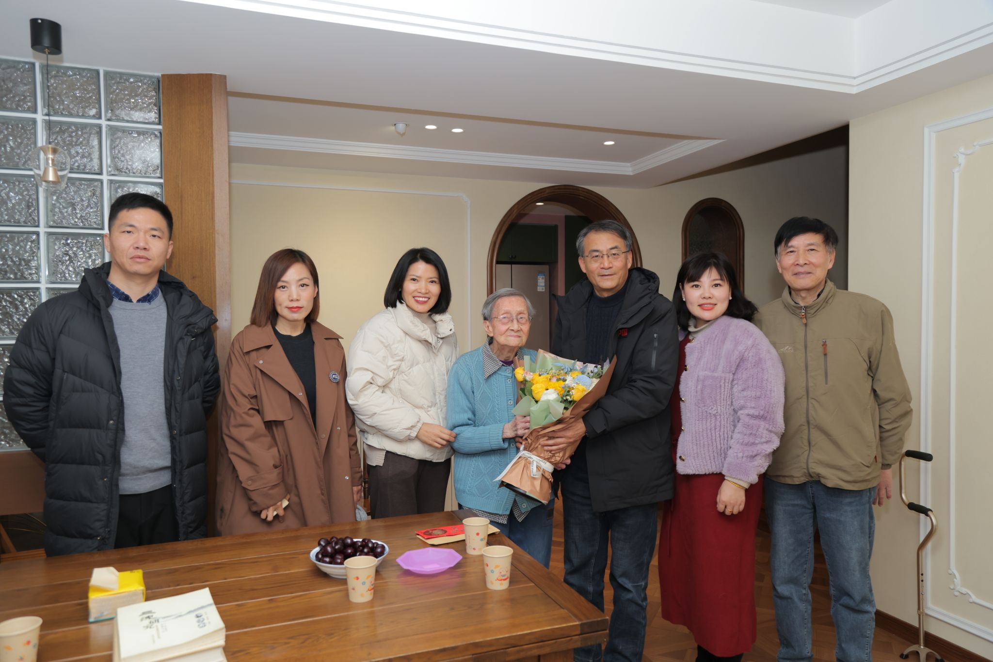 1月9日,伟德bv国际体育校党委副书记李群专程探望了百岁高龄的沈兑老师,感谢她与已故丈夫对学校发展作出的重要贡献。离退休工作处处长唐习华,党委统战部副部长王鑫,党委宣传部副部长龚莉红,校档案馆副馆长、校民建主委安艳杰陪同慰问。