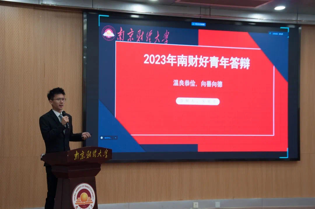 (国实2101班朱奕昊参加“南财好青年”答辩活动现场照)