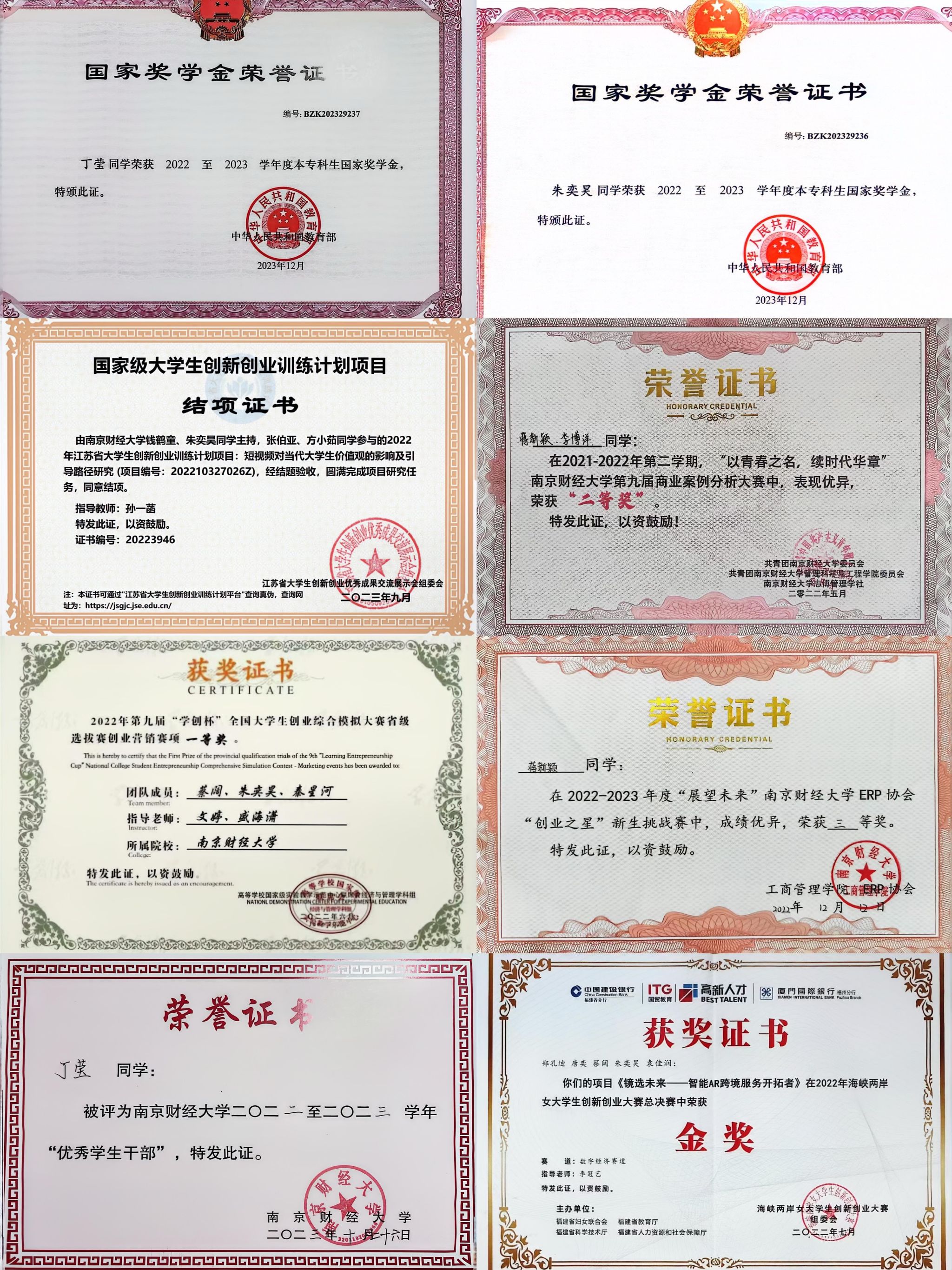 (国实2101班部分同学获奖情况)