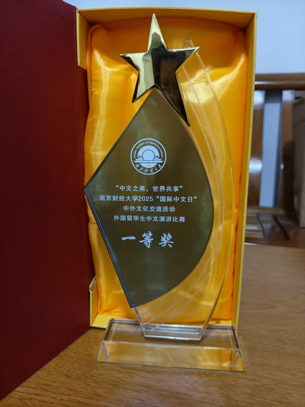 课堂外的李玥鐛更像一位文化桥梁上步履姗姗的行者。在“国际中文日”:“牧镭”杯汉语风采大赛的演讲台上,她以《双城记:从槟城到南京》为题,将两座城市的骑楼建筑、市井烟火娓娓道来。当她调侃“南京人怕湿热,槟城人怕回南天,原来我们对潮湿的恐惧是相通的”时,全场笑声与掌声交织。这份幽默背后的深厚观察,让她从二十名选手中脱颖而出,捧回一等奖奖杯。而走进社区老年大学宣讲马来西亚文化时,她特意带上亲手烹制的椰浆饭,老人们一边品尝热带风味,一边追问“槟城的早茶和广东有什么不同”,这种味蕾带来的文化共鸣让她感动不已。作为留学生学生会骨干,她策划的“一平方米世界”宿舍文化展上,中国学生教越南同学写春联,哈萨克斯坦留学生示范羊毛毡制作,不同语言的欢笑声穿透了走廊。