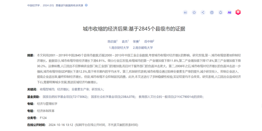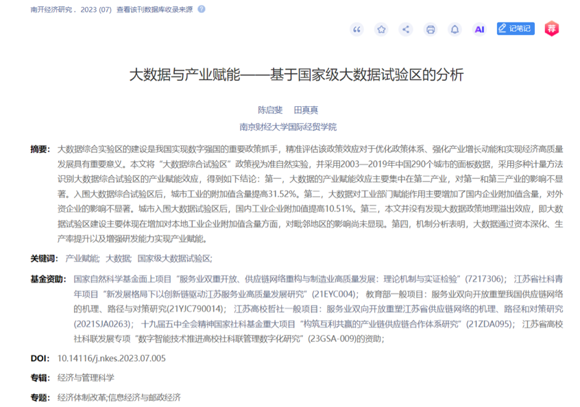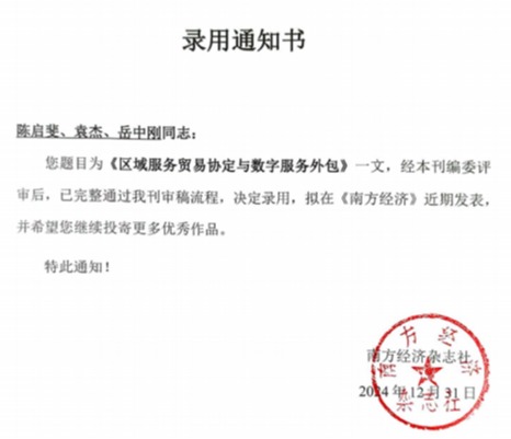 持之以恒的努力结出累累硕果。田真真作为除导师外第一作者完成的论文《大数据与产业赋能——基于国家大数据实验区的分析》发表于经济学核心期刊《南开经济研究》,与导师合作的文章《“烟花三月下扬州”——传统文化传播促进了旅游业增长》被经济学权威期刊《经济学(季刊)》录用,并荣获研究生国家奖学金等多项荣誉。袁杰同样表现优异,其除导师外第一作者论文《城市收缩的经济后果:基于2845个县级市的证据》发表于《中国经济学》,另一篇《区域服务贸易协定与数字服务外包》被《南方经济》录用,并屡获校级一等奖学金及“优秀研究生”称号。