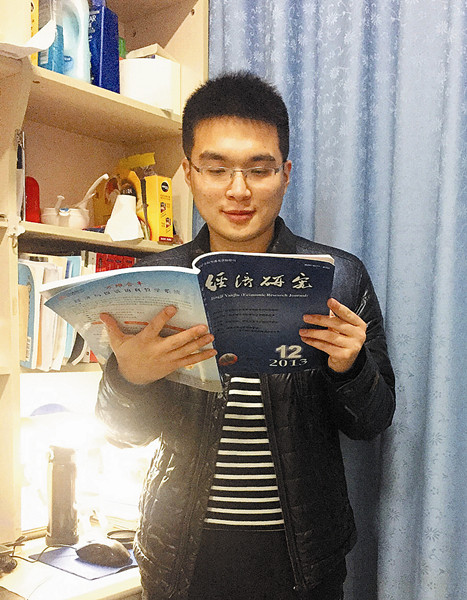 正所谓“勤能补拙是良训,一分辛苦一分才”,为了及时了解专业的研究方向,在研一的时候,周波阅读了大量与专业相关的文章,如《经济研究》《管理世界》《中国社会科学》等权威期刊,形成了扎实的专业知识背景。他坚持每天看一篇论文,每晚睡觉前还会浏览环境保护和经济发展方面最新的讯息。除此之外,周波的导师张成也给了他很多与专业相关的研究任务,例如完成一些科研项目的基础数据处理工作和撰写文献综述等。周波对导师交待的任务都一丝不苟地完成,提高了自身的数据分析能力,也培养了学科背景知识和论文写作能力。导师还鼓励他参与到国家级项目申请书的创作过程,使他了解科研项目的规划与实现机制。在导师的悉心指导下,周波渐渐对科研产生了浓厚的兴趣。“如果没有导师对我一点一滴的指导,可能就不会有现在的我了。”周波笑着回忆道。