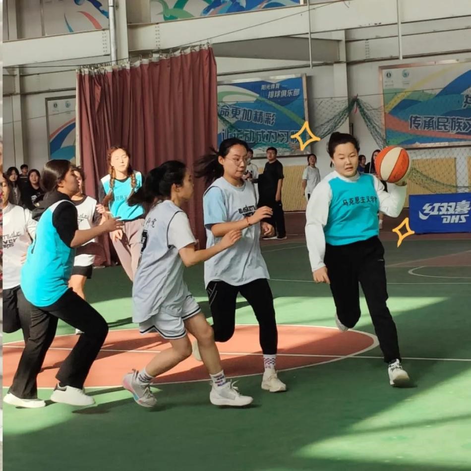 罚球时,她更是两球皆中,引起轰鸣般热烈的掌声与欢呼。场外的同学不由惊叹额尼荣贵技术之高超,队友们也为她点赞。
