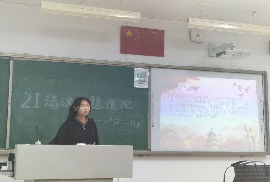 米兰milan官方网站21级法学汉班在学院的带领下,由班级支部委员会成员组织全班同学开展了理论学习和教育活动。由团支书为班级开展活动做出铺垫,确定活动形式,由支部委员会其他成员:副书记、宣传委员、组织委员带领大家学习理论知识。